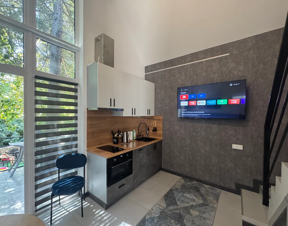Участок окружен деревьями, которые дают естественную тень, во дворе находится очень комфортно даже в летний зной! 8 вечнозеленых магнолий, 3 пальмы, 3 сосны — всё, что будет в Вашем распоряжении на протяжении всего отдыха. Но для доступа к этому красивому месту не надо ехать далеко в горы, асфальтированная дорога подходит до ворот! Местность ровная. Путь к морю в 600 метров проходит по тенистой асфальтированной улице. В шаговой доступности расположена столовая и отличный продуктовый магазин с адекватными ценами! Ресторан с очень вкусной пиццей и открытый подогреваемый бассейн в 400 метрах от нашего комплекса! Находясь в нашем гостевом доме, вы получаете комфорт и уединение с природой одновременно, это редкое сочетание! Южный — это место, которое может Вас погрузить в настоящий релакс, вдали от шумных вечеринок, пьяных гопников, шаурмичных ларьков и всего летнего многообразия! Это место, где Ваши дети будут в безопасности, даже находясь за пределами нашего комплекса!
