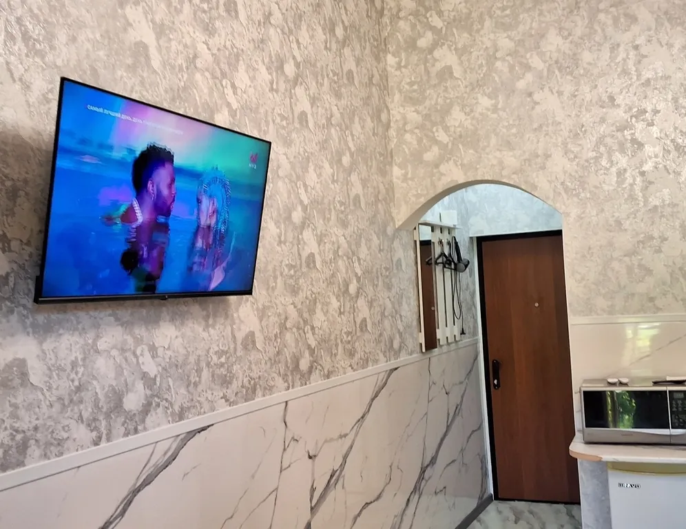 Cmart тв. Wi-fi.Красивая кухонная зона, посуда премиум класса, лондон топаз. Микроволновая печь, samsung c керамическим покрытием,индукцинная плита, чайник электрический, холодильник, фен, утюг, гладильная доска, гигроскопичное постельное бельё 100%хб. Полотенца, тапочки, зубные наборы. Средства гигиены. Услуги прачечной -Стиральная и сушильная машина за отдельную плату.