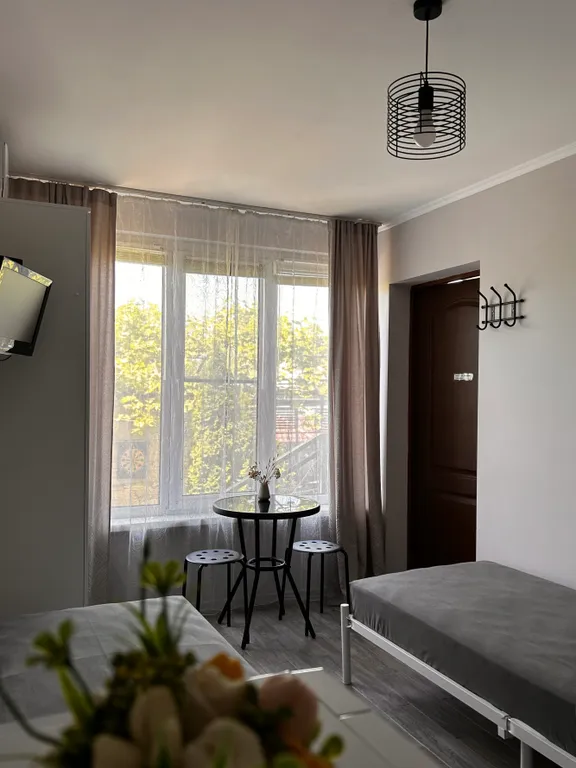 На территории гостевого дома оборудована летняя кухня для общего пользования: газовая плита, холодильник, свч печь, посуда и обеденная зона.