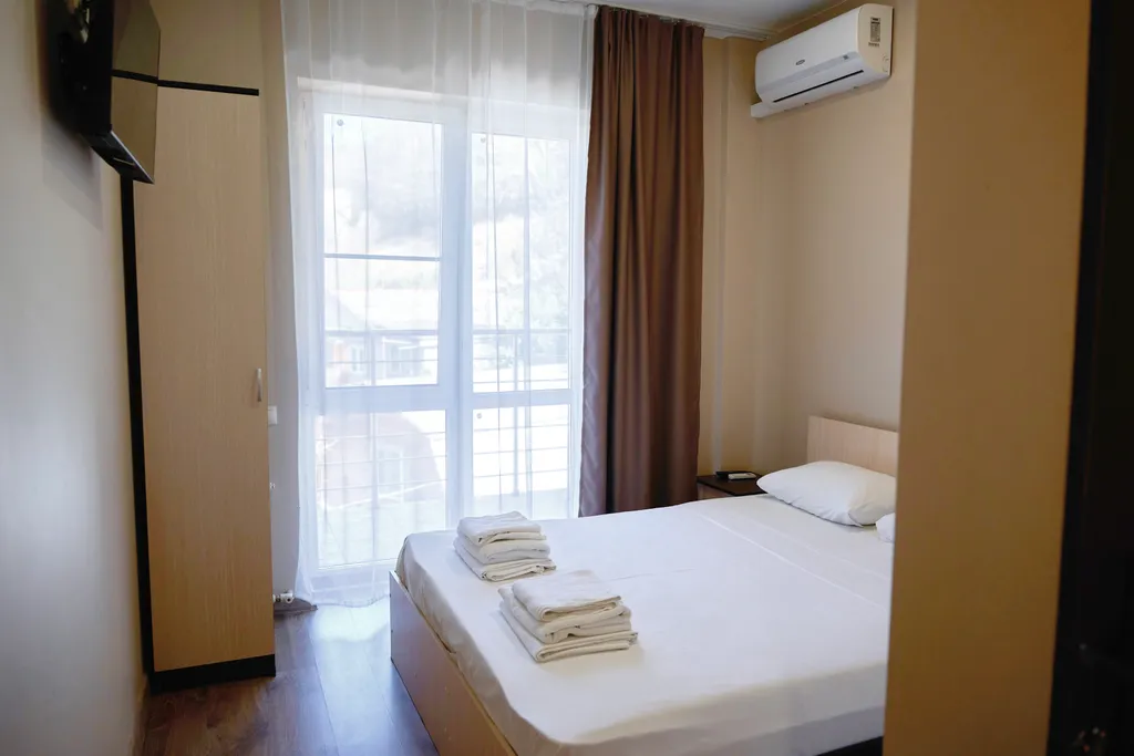 Кафе с европейской и кавказской кухней, круглогодичный открытый бассейн с подогревом, зона отдыха. Охраняемая автомобильная парковка на территории отеля.