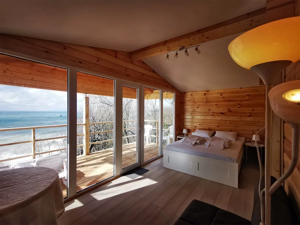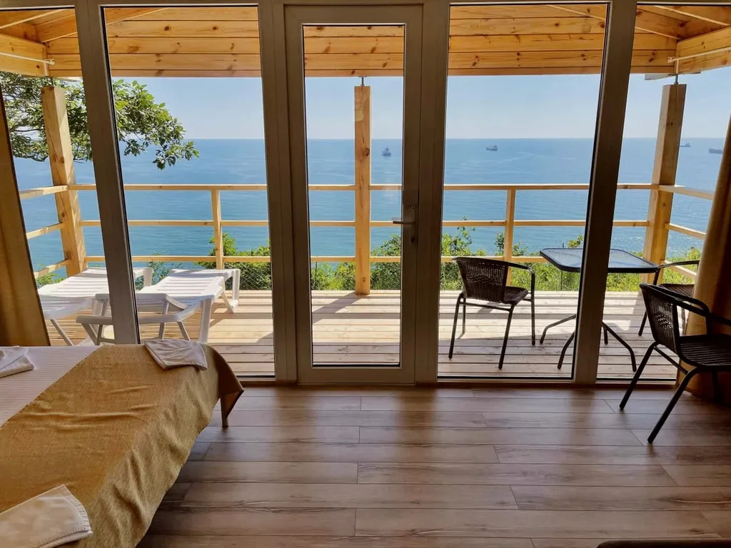 Отдельный дом для 2 - 4 гостей с видом на море с высоты 77 метров, террасой, санузлом и кухней.