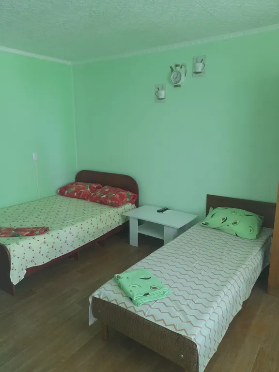 Данная комната рассчитана на 5 человек. В комнате 2 двуспальные кровати и 1 одноместная. Кондиционер.