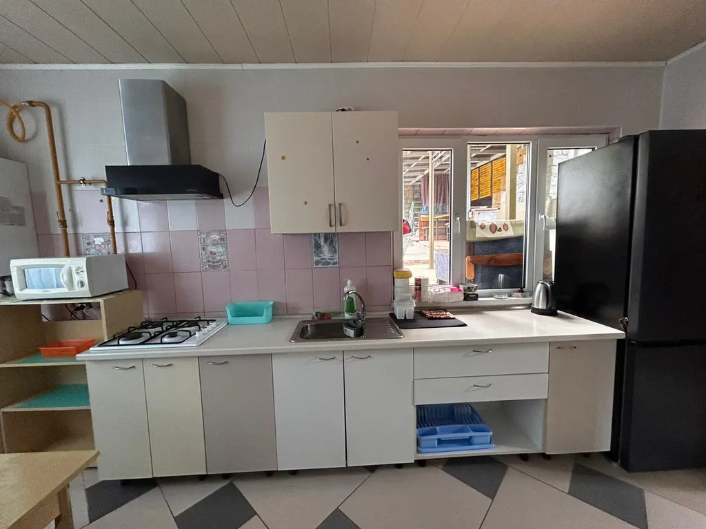 -На первом этаже одна комната 17кв. М., 4 спальных места-две односпальные кровати и двухспальный диван-кровать;