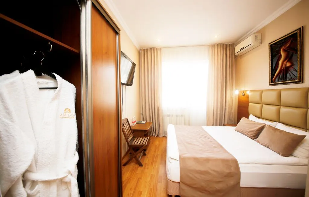 Amigo - небольшой гостевой дом, с кухней самообслуживания. Расположен в шаговой доступности от ТЦ "Красная площадь". Также в непосредственной близости транспортная развязка Сочи - Майкоп, Сочи - Джубга, что делает нас удобным для ночлега. Расстояние до центра города 1 км или 4 мин на транспорте. Парковка бесплатная. Номера на 2 и 3 этажах оборудованы индивидуальными балконами. Из удобств в номерах: кондиционер, телевизор, фен, полотенца, средства гигиены, халаты, тапочки. За отдельную плату можно позавтракать, а также взять кофе с собой. Бронируйте, приезжайте! Для командировочных гостей особые условия сотрудничества. Наш девиз: Достойный отдых. Доступная цена.